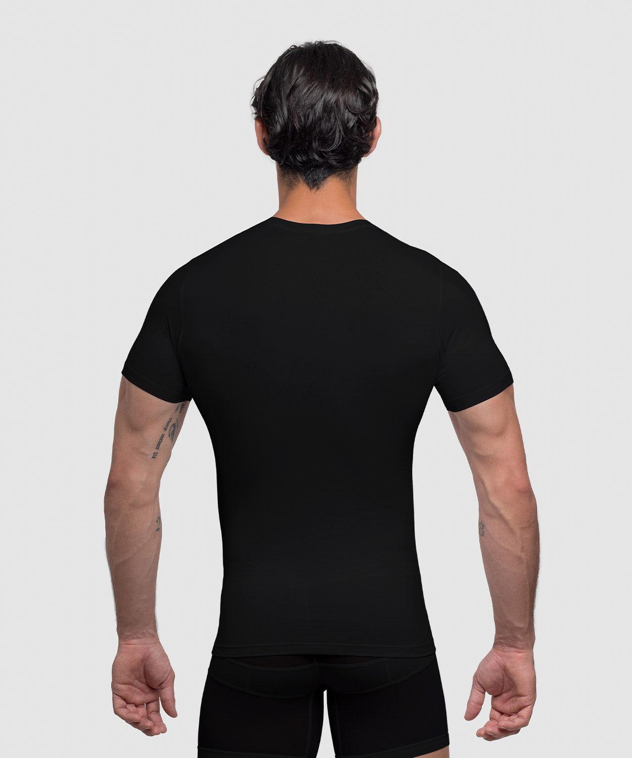 Cotton compression undershirt that features a high level of elasticity to firm, tone and slim the upper body. Its tapered construction is designed to remain tucked in all day long! Our patented technology tightens the body and makes it look slimmer.